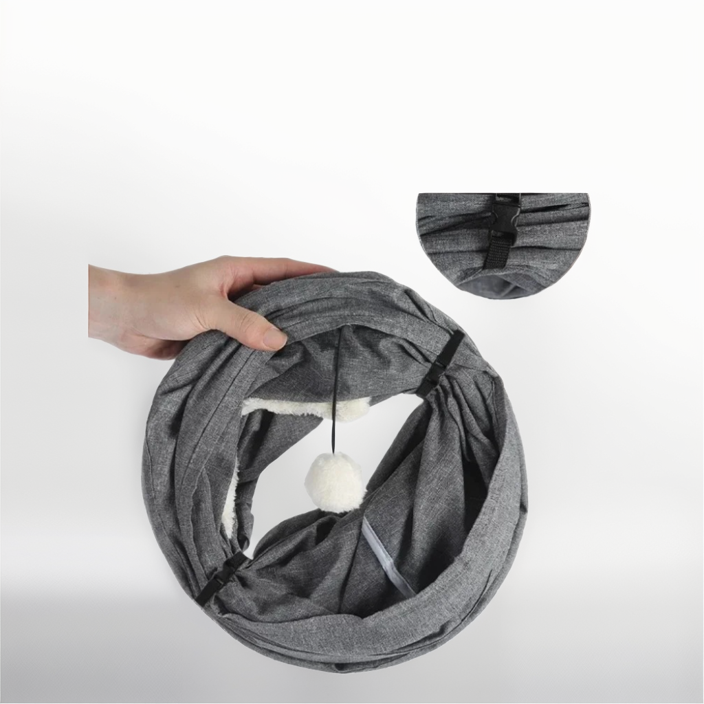 Der faltbare Katzentunnel lädt zum Verstecken und Jagen ein, der Spielturm fördert Kletterspaß und Geschicklichkeit, während das Bodenspielzeug für actionreiche Abwechslung sorgt. Gemeinsam schaffen die Elemente ein spannendes Spielumfeld, das Bewegung, Neugier und Spieltrieb perfekt vereint.